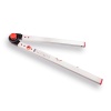 Hoekmeter met een aluminium kort been van 60 cm. en een aluminium lang been van 80 cm. is voorzien van een horizontale en verticale libel. De hoek van de benen is op twee manieren te fixeren. In graden of door de rode tussenschijf om te draaien in elke gewenste stand. Traploos instelbaar of in stappen van 15 graden met een meetbereik van 0 – 270 graden en is zeer geschikt voor het aanleggen van bestratingen. Merk BMI, made in Germany.